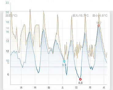 とりあえず10℃~15℃の設定にしたものの、10℃を切るみたいなので下を10.5℃に設定。